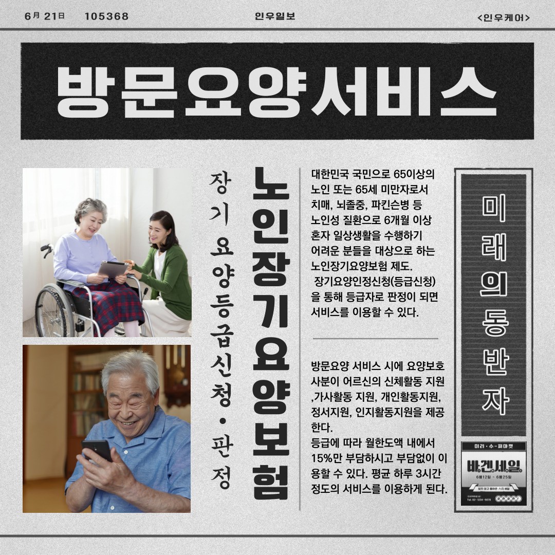 노인장기요양보험하니 용어가 생소하실 분들이 많습니다. 저희야 자주 듣고 보는 용어지만요. 보험자가 들어가서 거부하시는 분들도 있습니다. 그러나 장기요양보험이라고 해서 건강보험을 납부하는 대한국민 누구나 65세 이상이 되셔서 해당되시는 질환이 있으셔서 도움을 필요로 하실때 혜택을 보실수 있습니다.